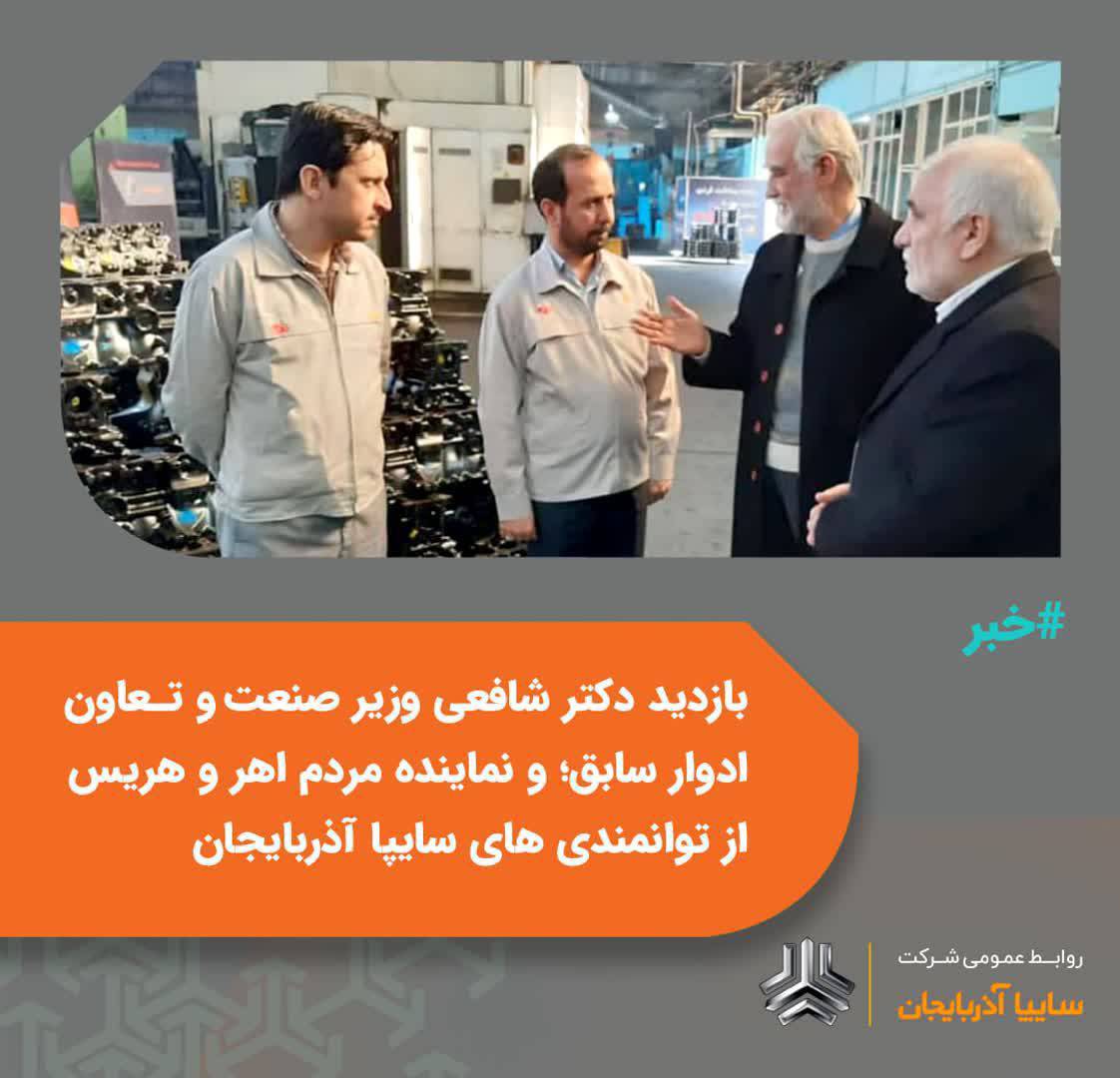 دکتر شافعی وزیر دولت های پنجم، ششم و هفتم و مهندس عبدالهی نماینده مردم اهر و هریس از شرکت سایپا آذربایجان بازدید کردند.