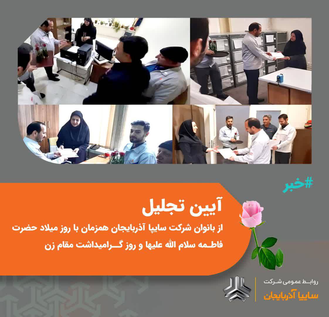 به گزارش روابط عمومی سایپا آذربایجان در سالروز ولادت فرخنده حضرت زهرا (س) و هفته گرامی داشت مقام زن و روز مادر از همکاران خانم در شرکت تقدیر به عمل آمد