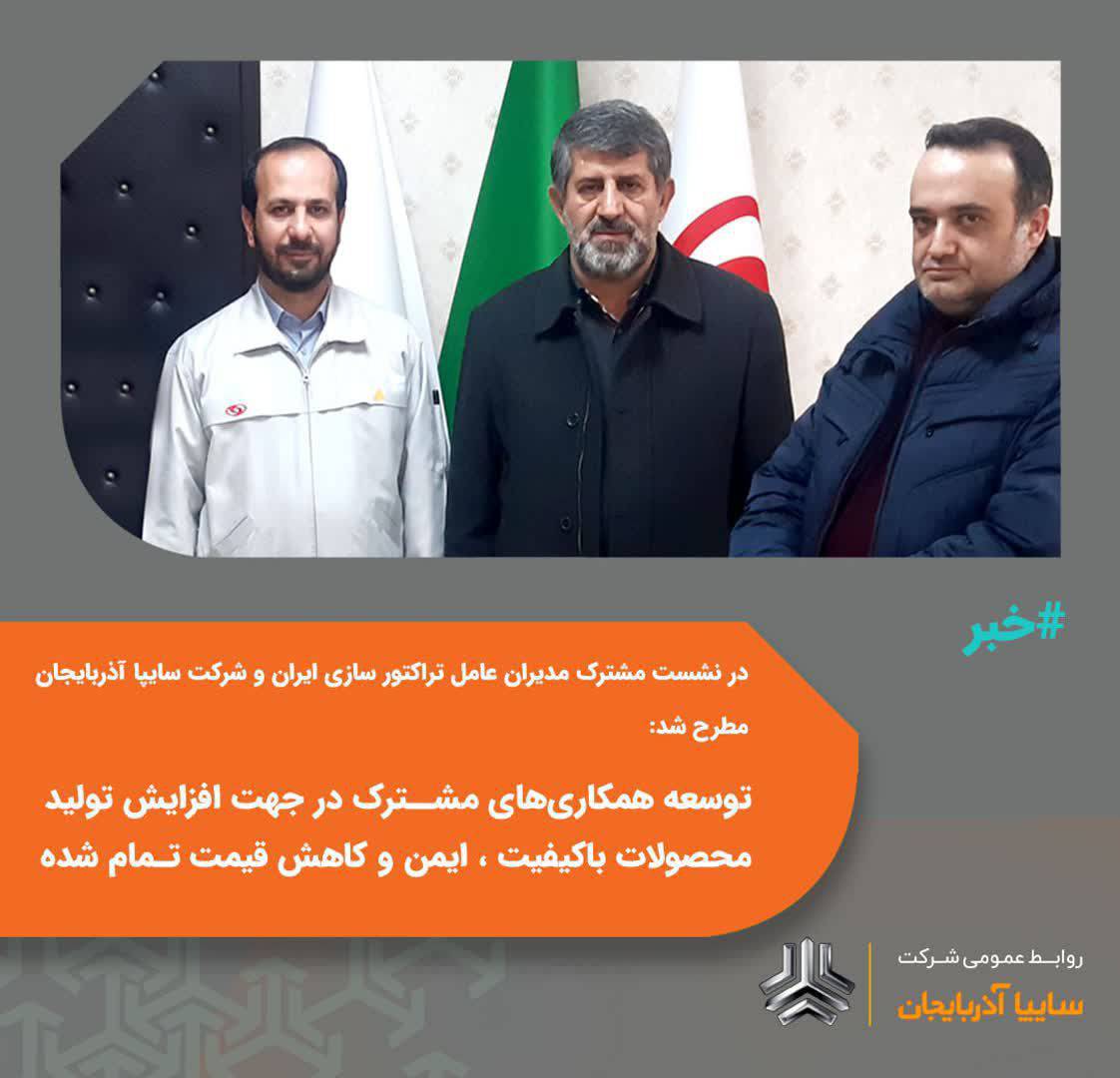 ️به گزارش روابط عمومی سایپا آذربایجان ؛ عادل شهنازی فر مدیرعامل سایپا آذربایجان با اشاره به حضور دکتر وحید زاده مدیرعامل تراکتور سازی ایران در سایپا آذربایجان، گفت: این نشست مشترک با هدف گسترش همکاریها صورت گرفت و در این میان توافقهایی حاصل شد تا طرفین از امکانات و ظرفیتهای موجود استفاده کنند.او با تاکید بر اینکه همکاری مشترک بین دو مجموعه بزرگ صنعتی در استان توسعه خواهد یافت، گفت: با توجه به زیرساختهای مناسب تولیدی سایپا آذربایجان و تراکتور سازی ایران با همکاریهای مشترک میتوان به افزایش تولید با کیفیت، محصولات ایمن، کاهش قیمت تمام شده دست یافت.